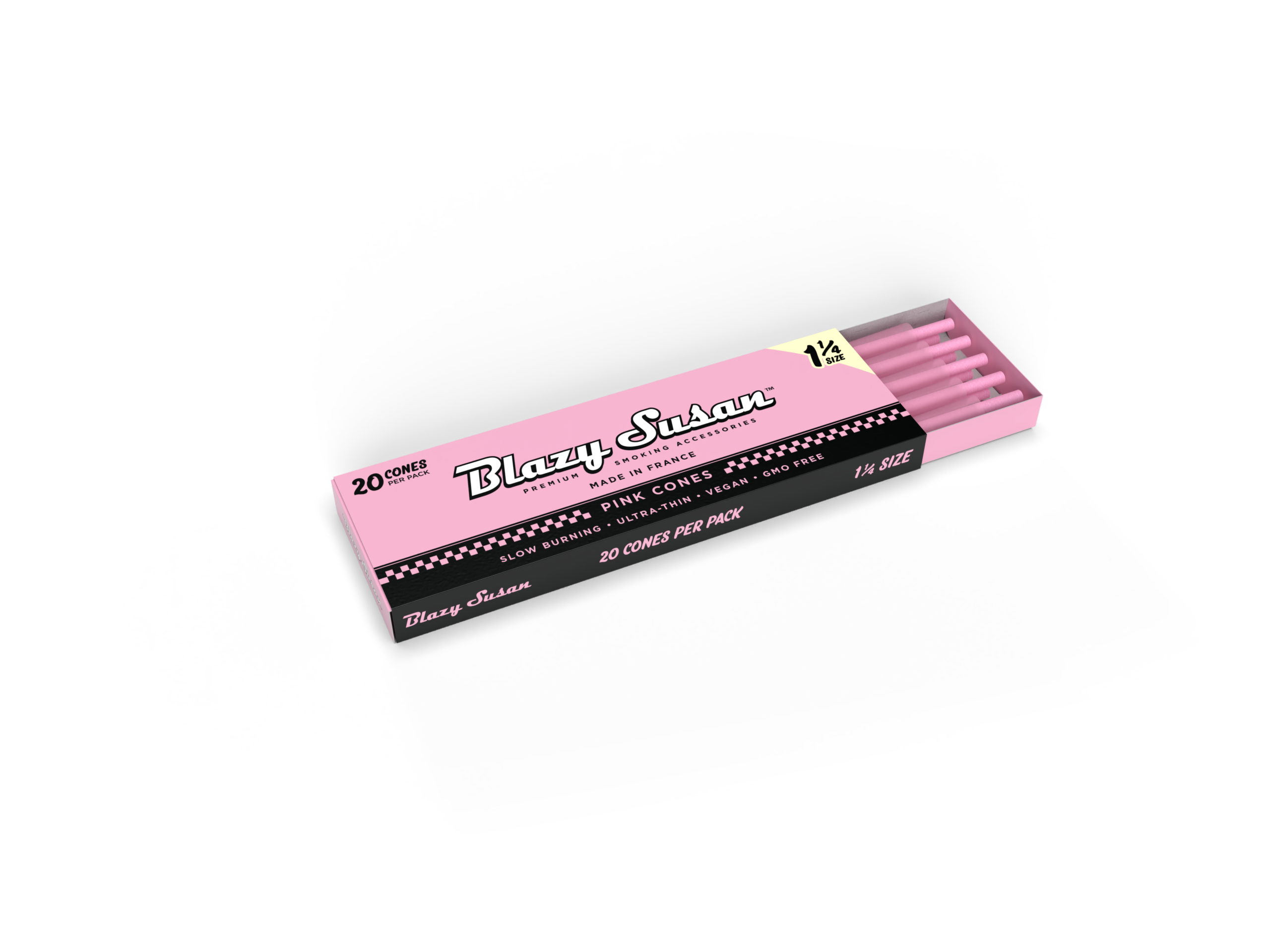 Blazy Susan Pink Paper Cones 78mm (1 ¼) – 20 Count Master Case delivers premium quality and convenience in one eco-friendly package. Each pre-rolled cone is crafted from ultra-thin, slow-burning paper that enhances your experience with a smooth and even burn.