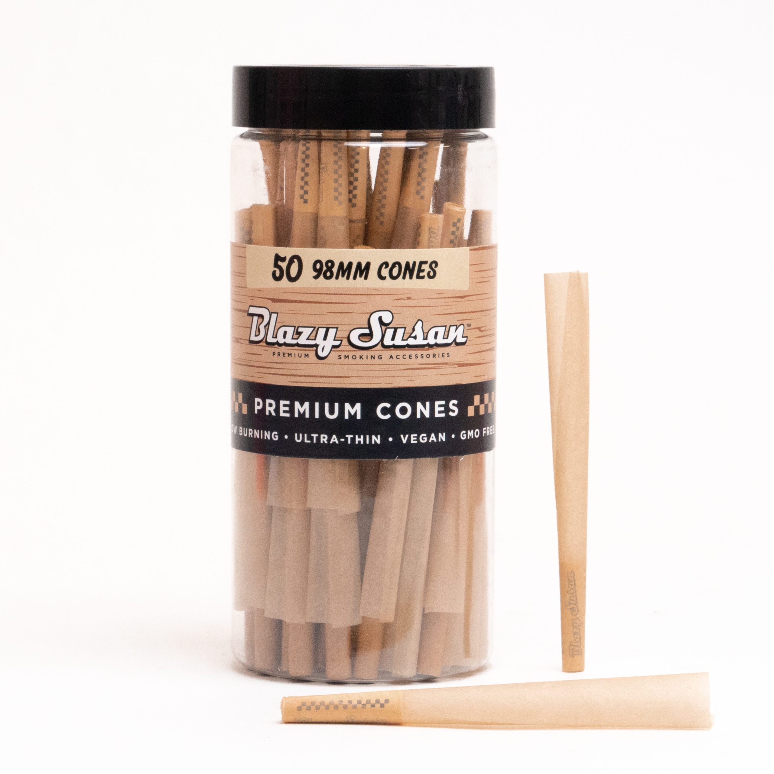50 pre-rolled cones per jar (98mm size)