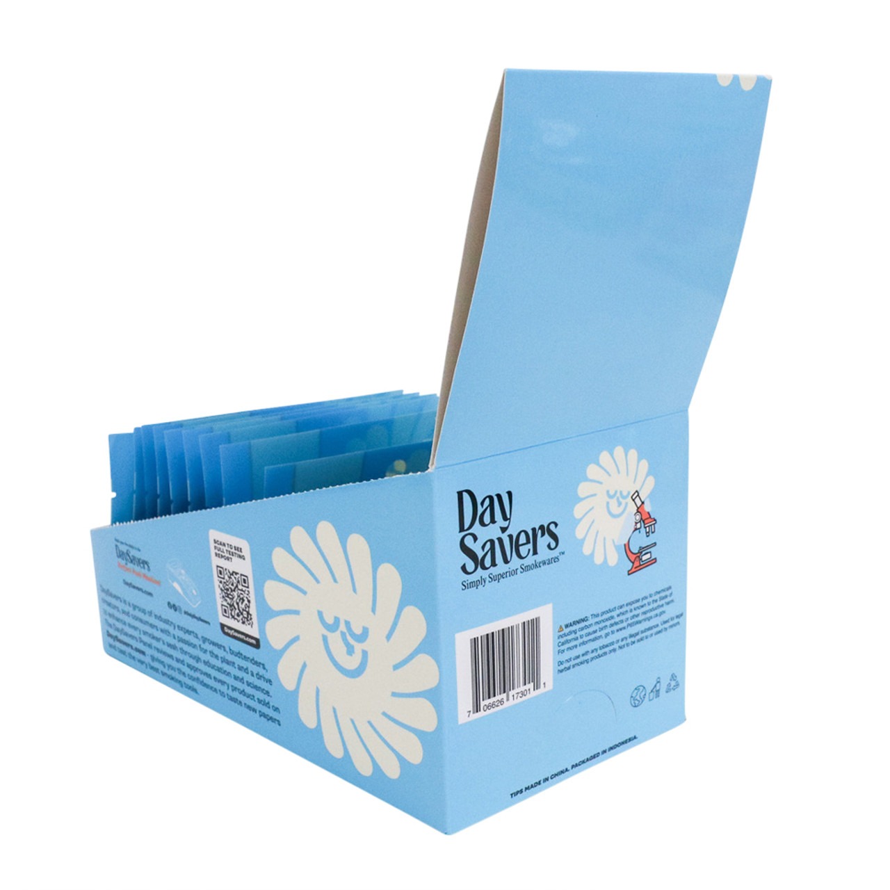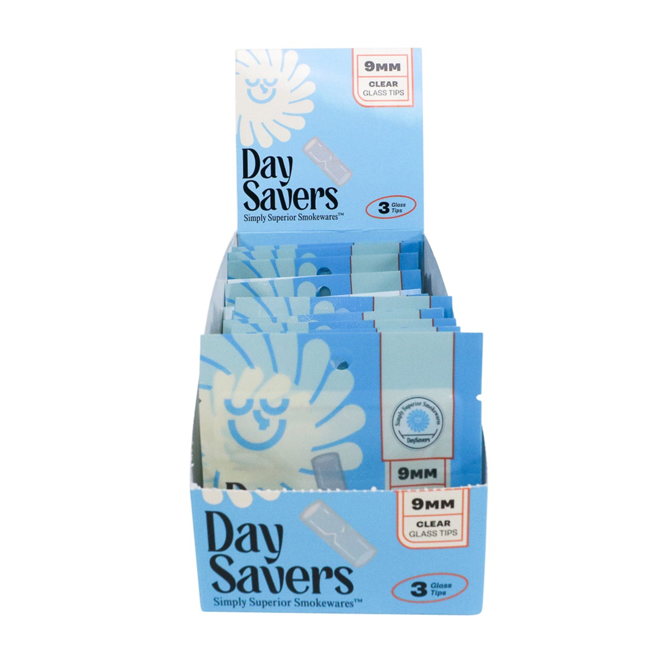 DaySavers Glass Filter Tips 9mm Display Box | 3 Tips per Pack, 20 Packs per Box