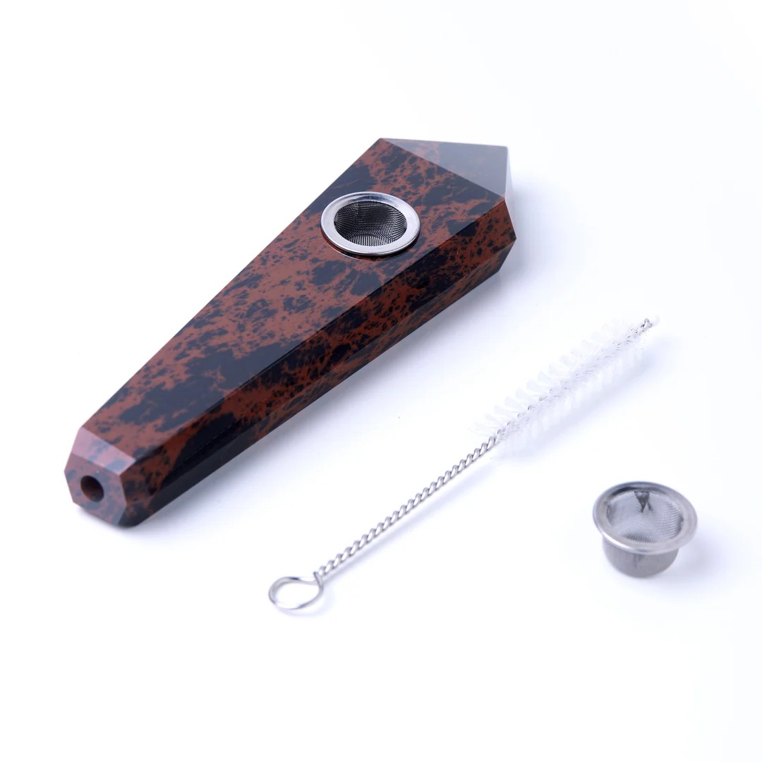 Enjoy a refined smoking session with the Red Obsidian Gemstone Pipes – Astral Project. This unique hand pipe, carved from pure Gemstone, provides a luxurious feel and a smooth draw. Ideal for those who appreciate quality craftsmanship.
