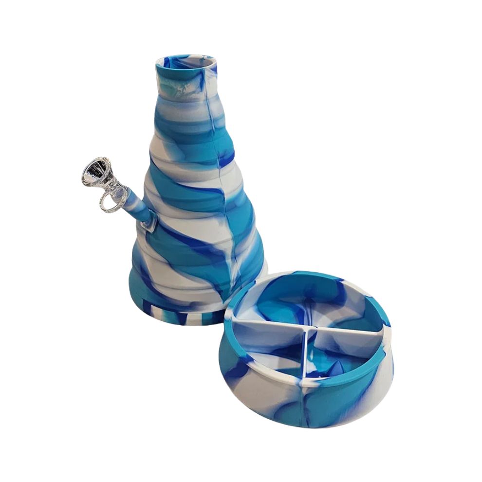 Perfect for hiking, camping, festivals, or on-the-go sessions, the Collapsibong features a smell-proof storage compartment at its base that doubles as a de-bowler-style ashtray. The container is designed to neatly store the silicone stem, glass bowl, and any essentials you want to bring along.